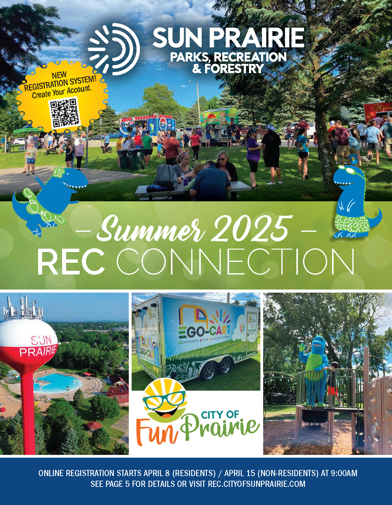 Parks, Recreation & Forestry Guides Summer 2025 Rec Connection Winter / Spring 2025 Rec Connection Community Guide Request We are happy to send you printed a guide, just fill out the form and we'll get it in the mail. X/TwitterThis field is for validation purposes and should be left unchanged.Name(Required) First Last Email(Required) PhoneWhat would you like to receive? Community Guide Winter Guide Address(Required) Street Address Address Line 2 City State / Province / Region ZIP / Postal Code Country AfghanistanAlbaniaAlgeriaAmerican SamoaAndorraAngolaAnguillaAntarcticaAntigua and BarbudaArgentinaArmeniaArubaAustraliaAustriaAzerbaijanBahamasBahrainBangladeshBarbadosBelarusBelgiumBelizeBeninBermudaBhutanBoliviaBonaire, Sint Eustatius and SabaBosnia and HerzegovinaBotswanaBouvet IslandBrazilBritish Indian Ocean TerritoryBrunei DarussalamBulgariaBurkina FasoBurundiCabo VerdeCambodiaCameroonCanadaCayman IslandsCentral African RepublicChadChileChinaChristmas IslandCocos IslandsColombiaComorosCongoCongo, Democratic Republic of theCook IslandsCosta RicaCroatiaCubaCuraçaoCyprusCzechiaCôte d'IvoireDenmarkDjiboutiDominicaDominican RepublicEcuadorEgyptEl SalvadorEquatorial GuineaEritreaEstoniaEswatiniEthiopiaFalkland IslandsFaroe IslandsFijiFinlandFranceFrench GuianaFrench PolynesiaFrench Southern TerritoriesGabonGambiaGeorgiaGermanyGhanaGibraltarGreeceGreenlandGrenadaGuadeloupeGuamGuatemalaGuernseyGuineaGuinea-BissauGuyanaHaitiHeard Island and McDonald IslandsHoly SeeHondurasHong KongHungaryIcelandIndiaIndonesiaIranIraqIrelandIsle of ManIsraelItalyJamaicaJapanJerseyJordanKazakhstanKenyaKiribatiKorea, Democratic People's Republic ofKorea, Republic ofKuwaitKyrgyzstanLao People's Democratic RepublicLatviaLebanonLesothoLiberiaLibyaLiechtensteinLithuaniaLuxembourgMacaoMadagascarMalawiMalaysiaMaldivesMaliMaltaMarshall IslandsMartiniqueMauritaniaMauritiusMayotteMexicoMicronesiaMoldovaMonacoMongoliaMontenegroMontserratMoroccoMozambiqueMyanmarNamibiaNauruNepalNetherlandsNew CaledoniaNew ZealandNicaraguaNigerNigeriaNiueNorfolk IslandNorth MacedoniaNorthern Mariana IslandsNorwayOmanPakistanPalauPalestine, State ofPanamaPapua New GuineaParaguayPeruPhilippinesPitcairnPolandPortugalPuerto RicoQatarRomaniaRussian FederationRwandaRéunionSaint BarthélemySaint Helena, Ascension and Tristan da CunhaSaint Kitts and NevisSaint LuciaSaint MartinSaint Pierre and MiquelonSaint Vincent and the GrenadinesSamoaSan MarinoSao Tome and PrincipeSaudi ArabiaSenegalSerbiaSeychellesSierra LeoneSingaporeSint MaartenSlovakiaSloveniaSolomon IslandsSomaliaSouth AfricaSouth Georgia and the South Sandwich IslandsSouth SudanSpainSri LankaSudanSurinameSvalbard and Jan MayenSwedenSwitzerlandSyria Arab RepublicTaiwanTajikistanTanzania, the United Republic ofThailandTimor-LesteTogoTokelauTongaTrinidad and TobagoTunisiaTurkmenistanTurks and Caicos IslandsTuvaluTürkiyeUS Minor Outlying IslandsUgandaUkraineUnited Arab EmiratesUnited KingdomUnited StatesUruguayUzbekistanVanuatuVenezuelaViet NamVirgin Islands, BritishVirgin Islands, U.S.Wallis and FutunaWestern SaharaYemenZambiaZimbabweÅland Islands Newsletter Keep me informed about Sun Prairie